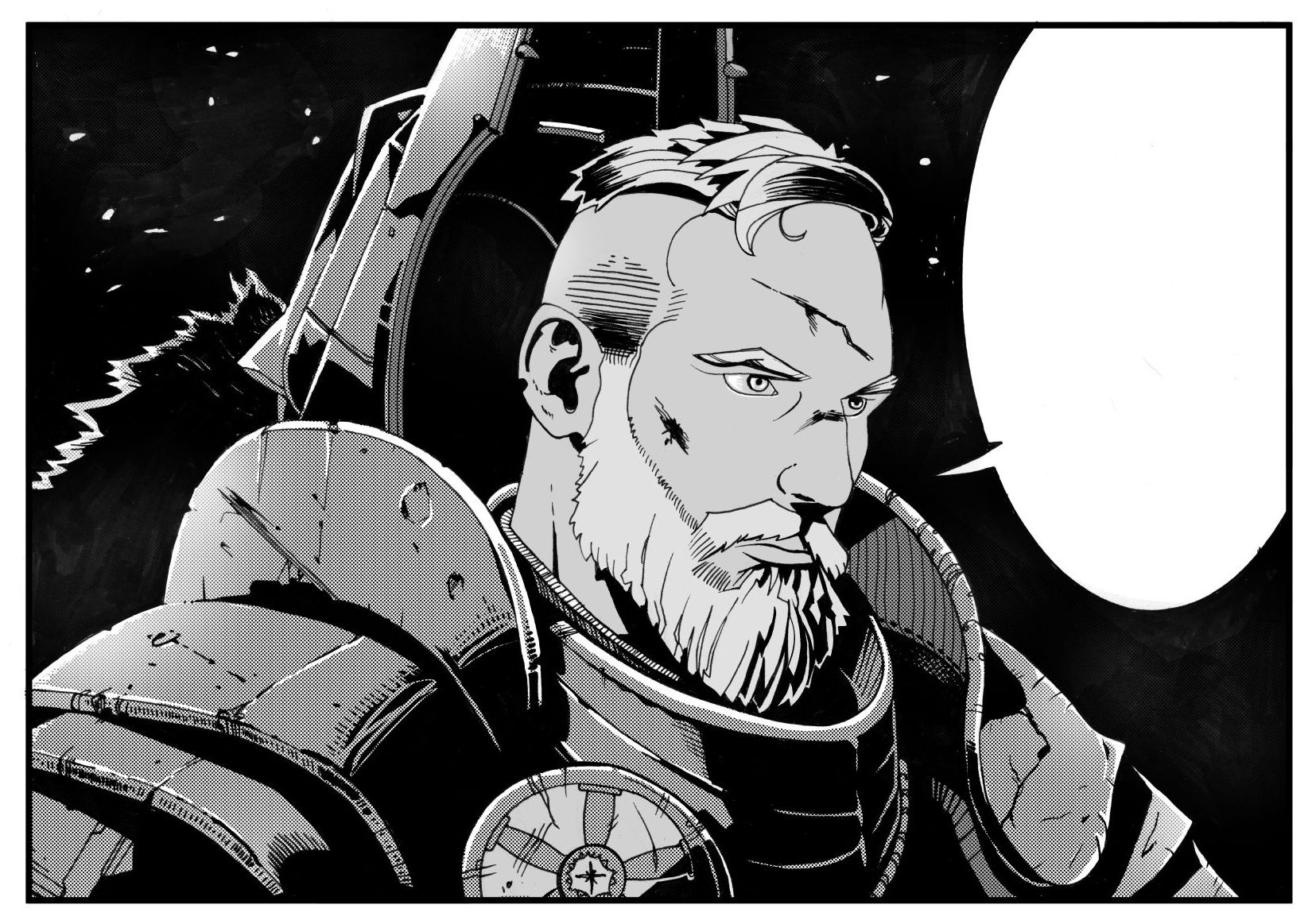 Ich habe mir eine echte Person als Inspiration für meinen Götz genommen. Ich sag noch nicht wen, aber Leute, die ähnlich Interessen haben, werden ihn erkennen. :D Das war für mich ein richtiger kleiner Durchbruch in der Stilfindung. Der Comiczeichner, der mir die Idee dazu gab, war Bryan Hitch, als er Samuel L Jackson als Vorbild für seinen Nick Fury in Mark Millars „The Ultimates“ Comics nahm. Das war glaube ich auch der Grund, dass der Schauspieler für die Fury Rolle in den Marvel Filmen besetzt wurde.